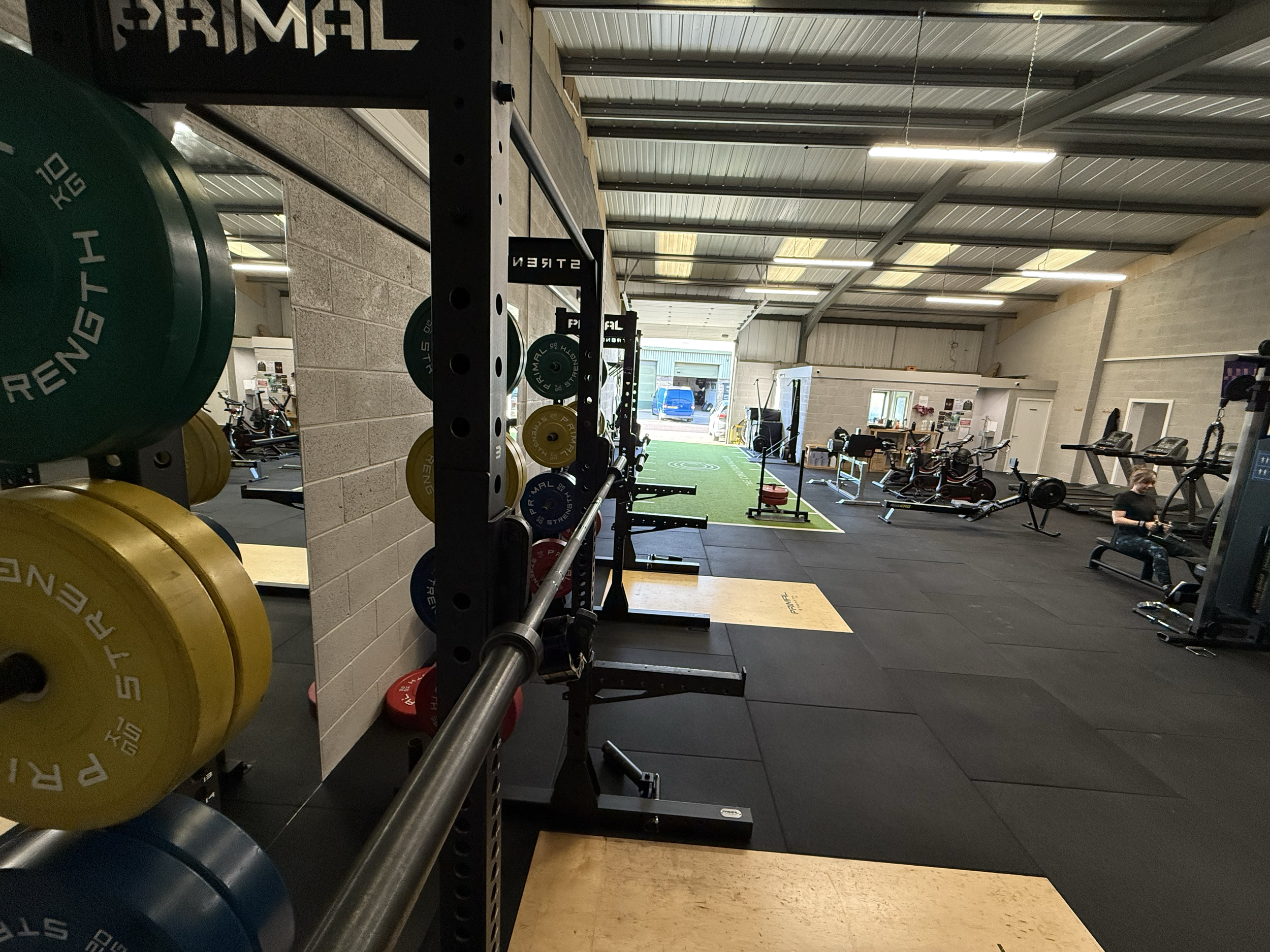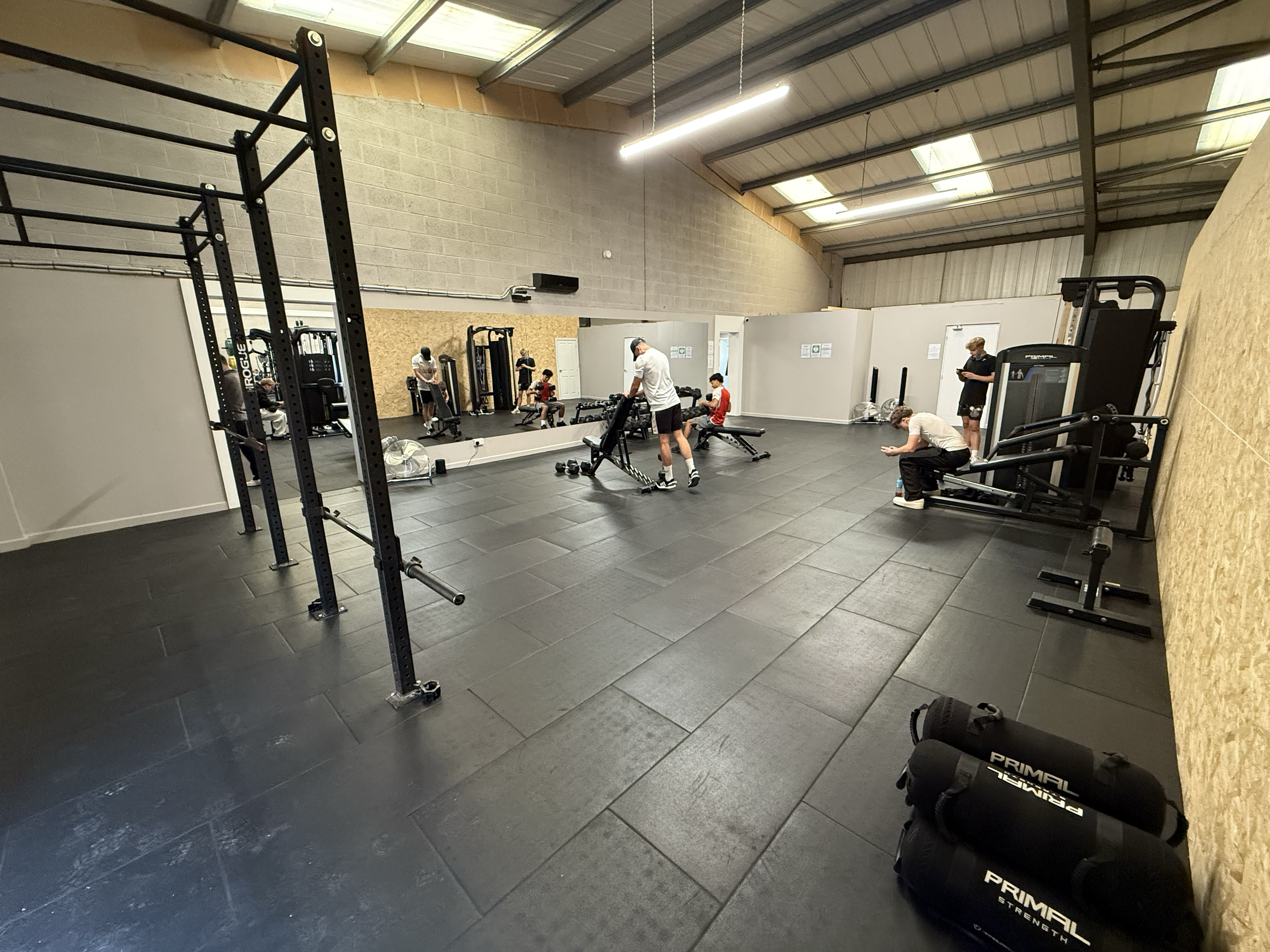 THE GYM FEATURES A CARDIO SECTION, MACHINE WEIGHTS SECTION, SQUAT RACKS, LIFTING AREAS, DUMBBELL & BENCH AREA, AND FUNCTIONAL TRAINING AREA WITH ASTRO TRACK.